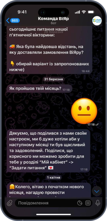 Активність в боті: 1000+ дій щомісяця